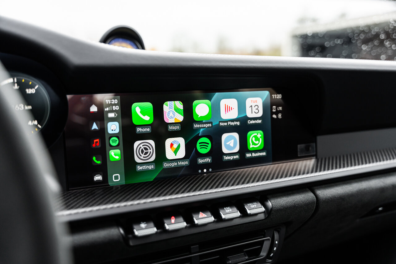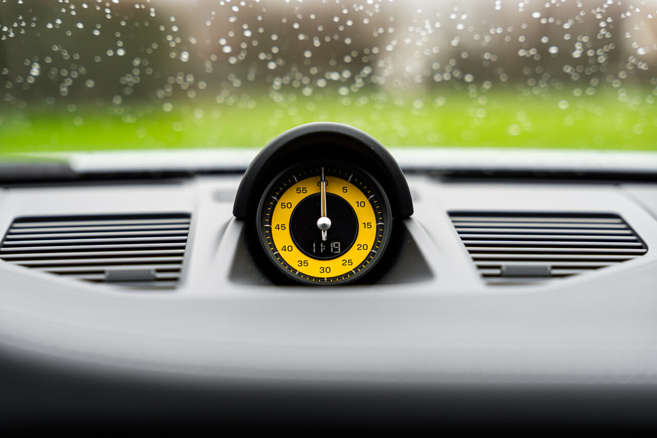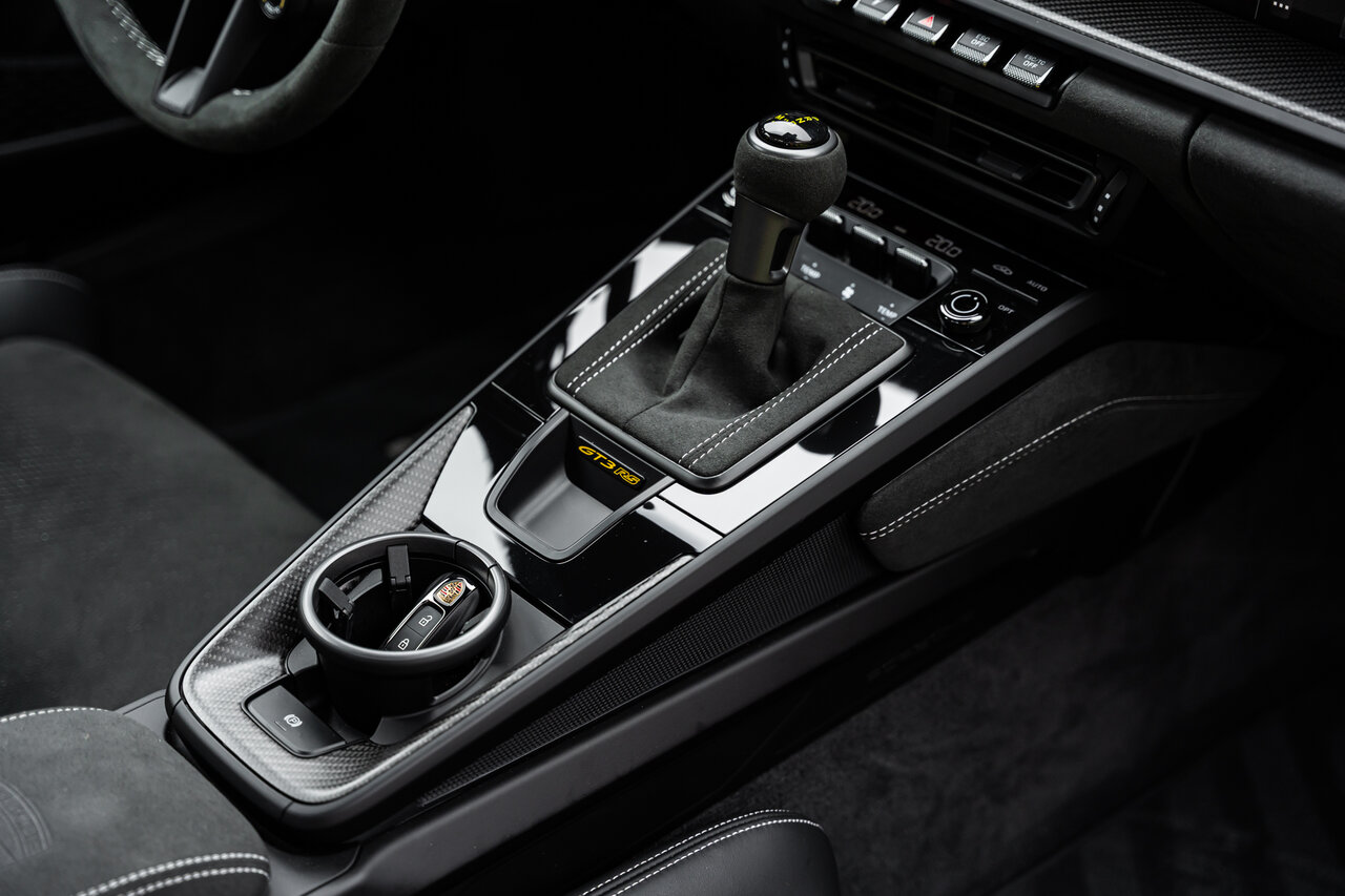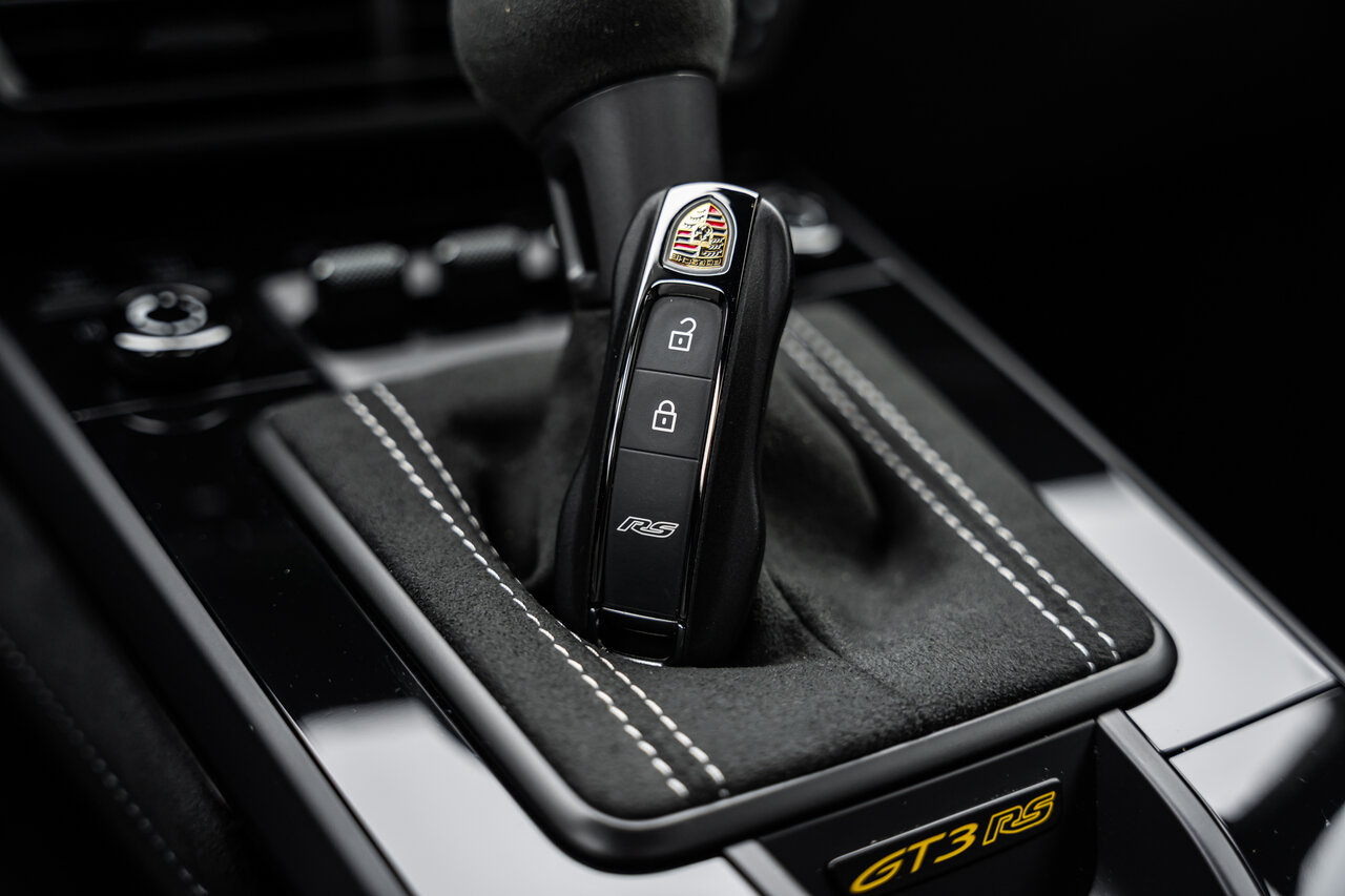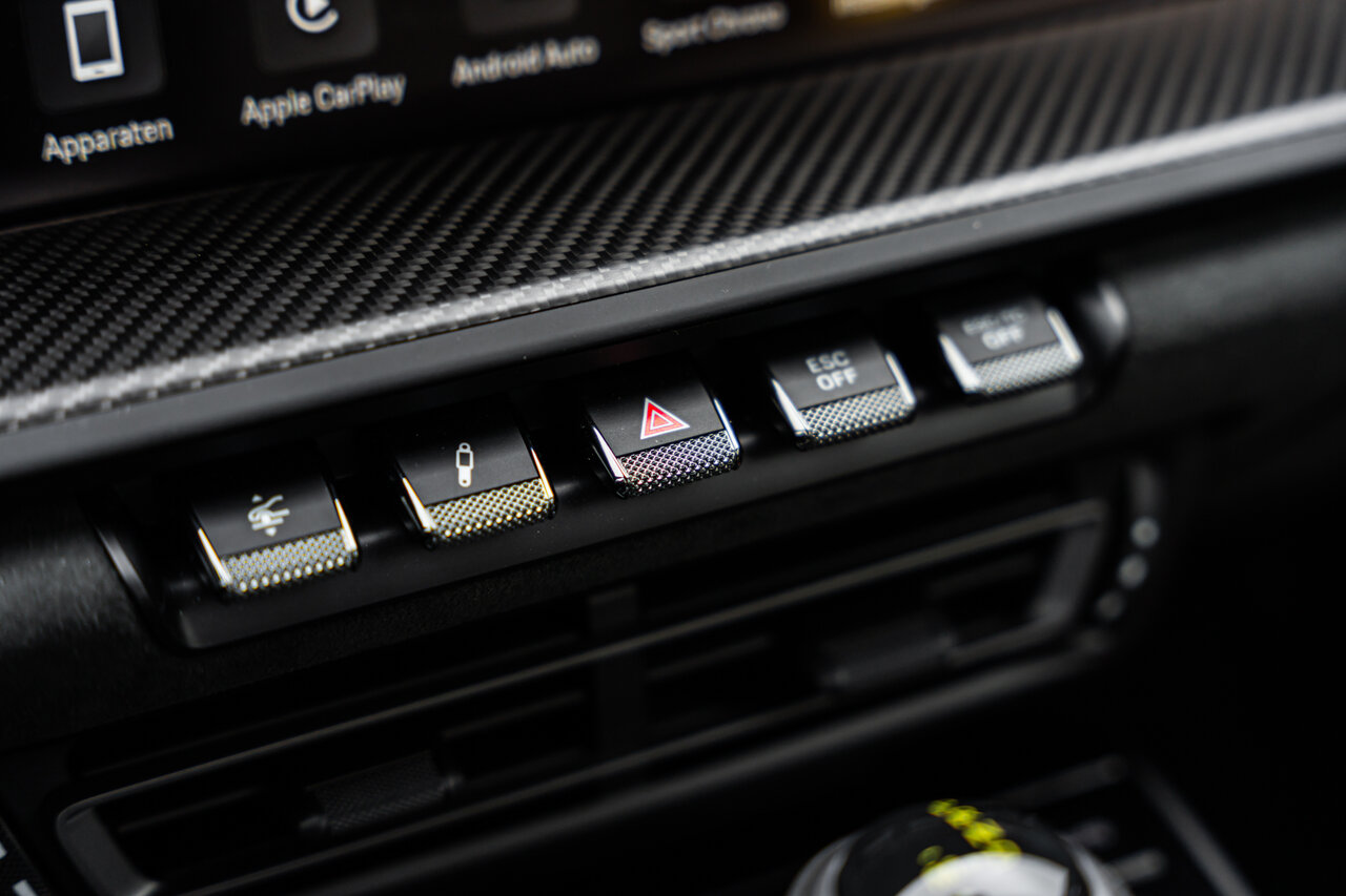 - 6E5 Porsche-embleem op de middenconsole in Alcantara®