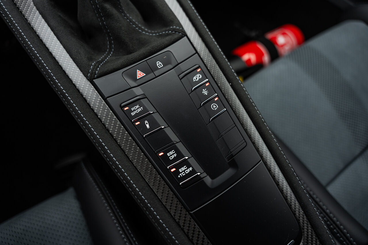 - Weissach interior package with extended elements in leather and Race-Tex black and Arctic Grey