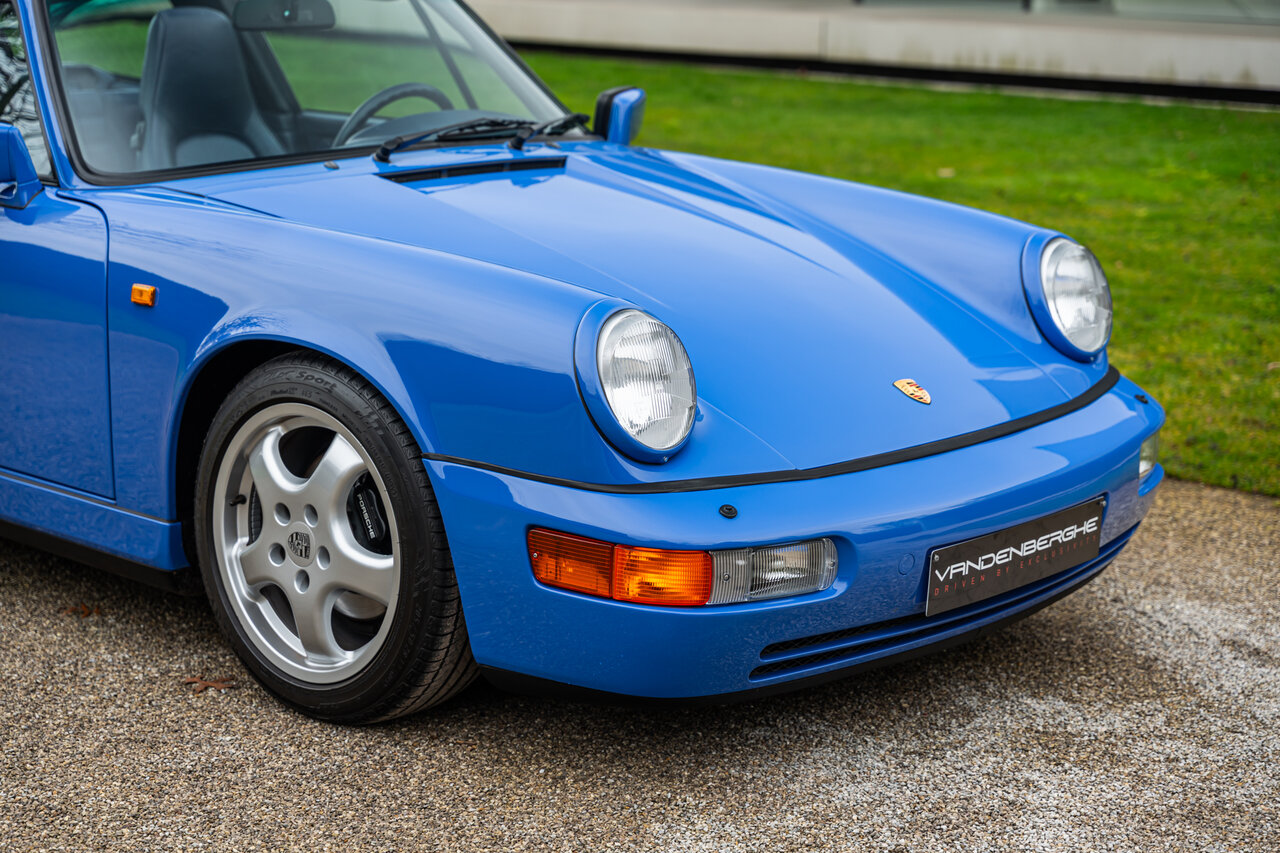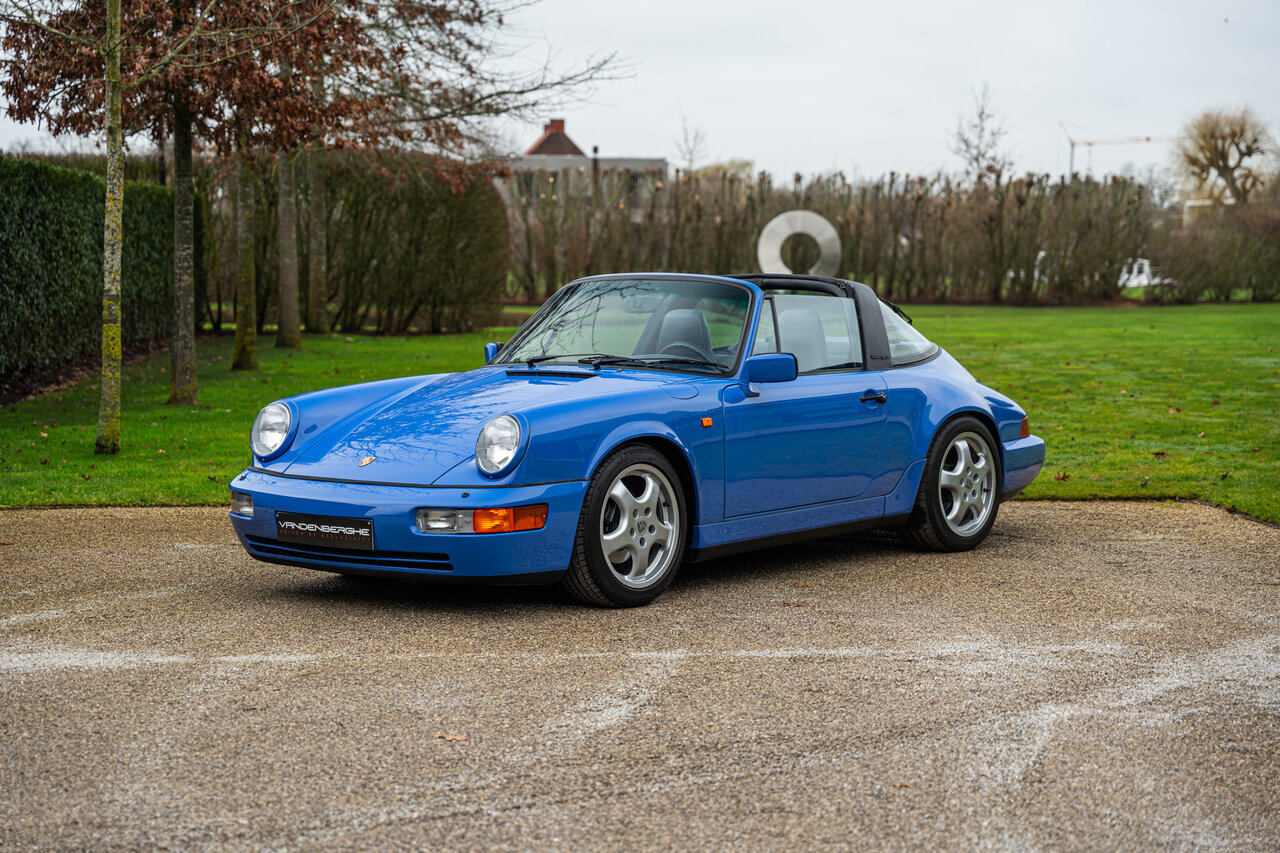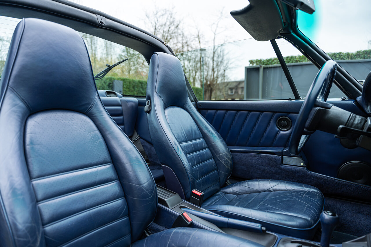 Deze 964 Targa is afgewerkt in het prachtige Maritime Blue (F2V9), een kleur oorspronkelijk ontwikkeld voor de 964 RS-modellen. Omdat deze kleur nooit standaard werd aangeboden op de 964 Targa, zijn er wereldwijd slechts enkele exemplaren in deze configuratie gebouwd. Dit maakt deze Porsche een bijzondere verzamelaarswagen.