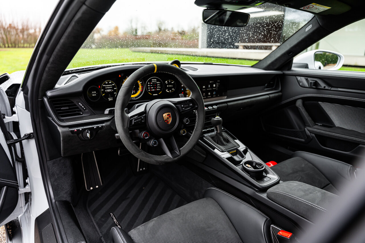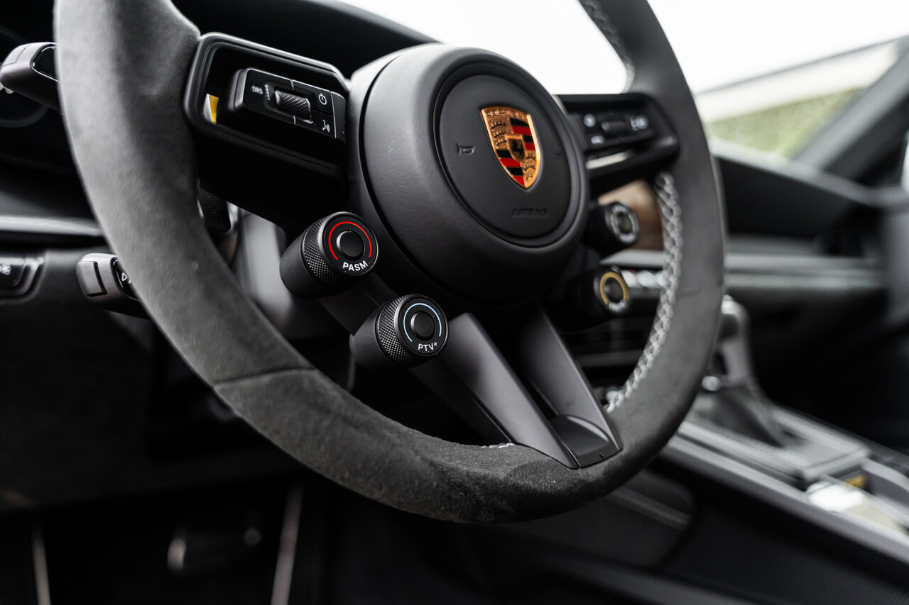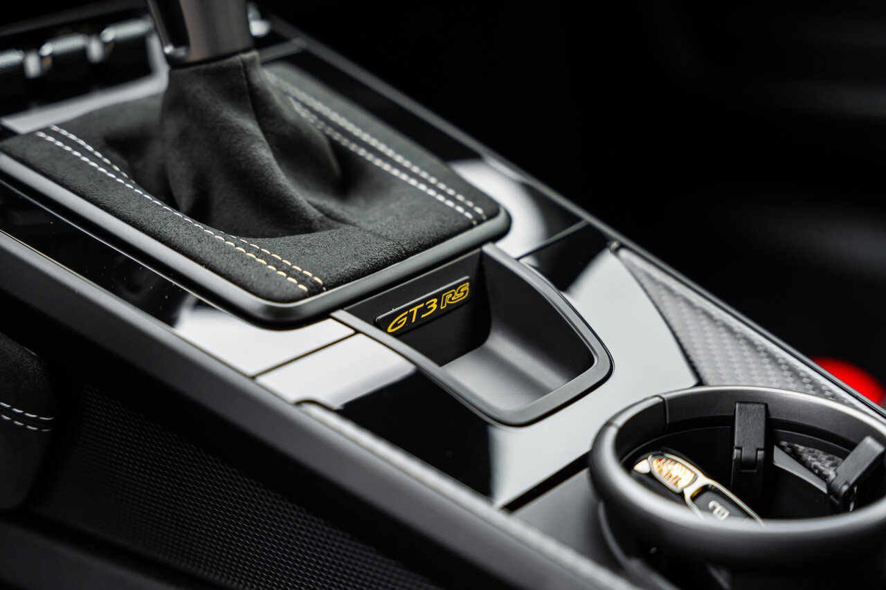 - 6E5 Porsche-embleem op de middenconsole in Alcantara®