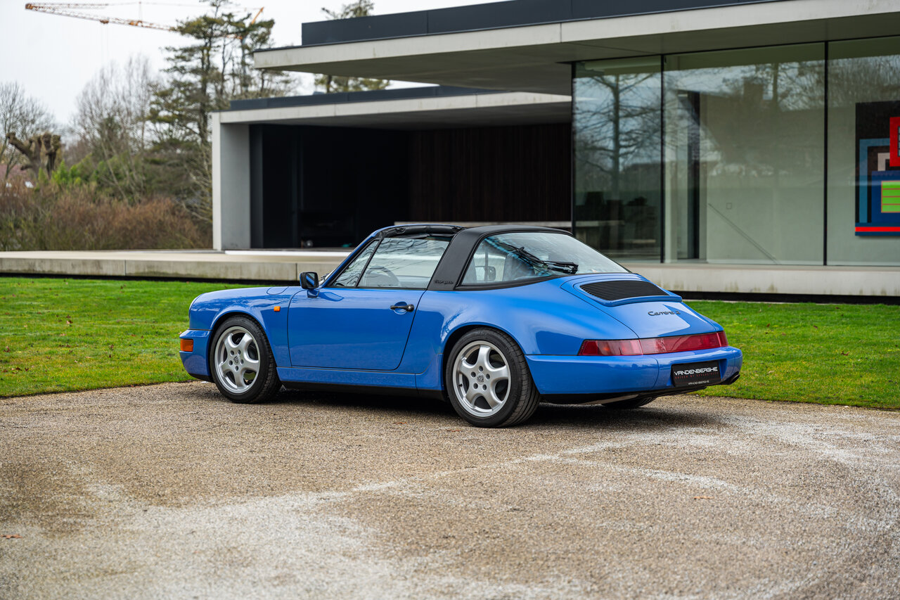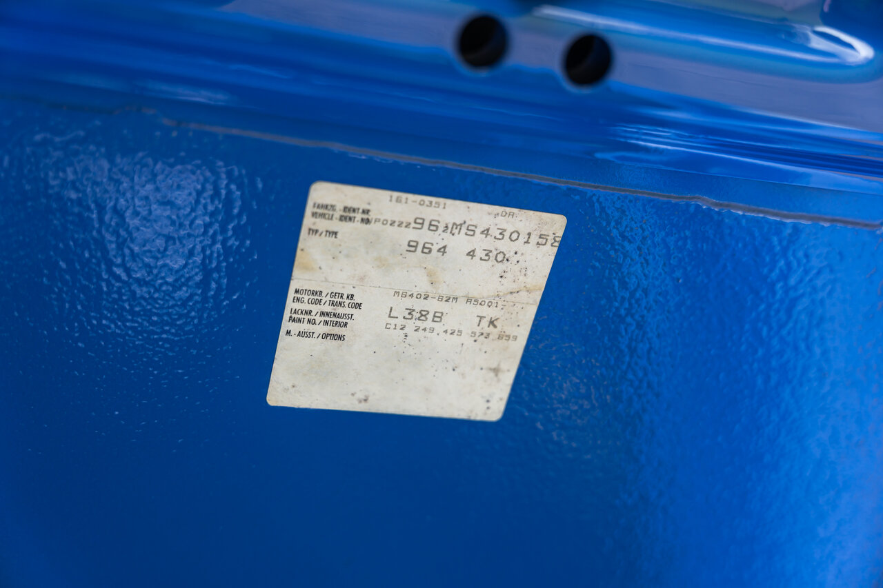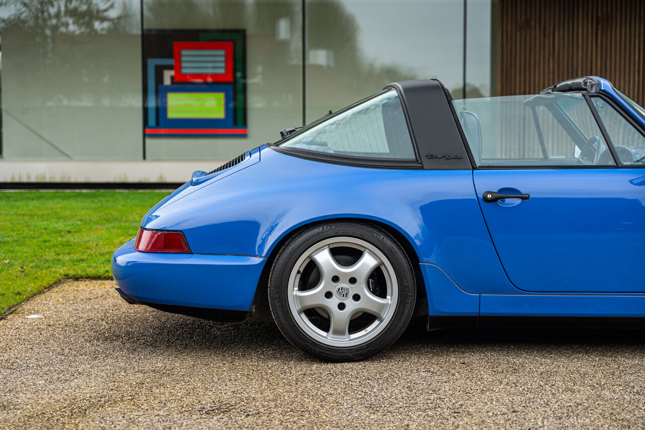 Deze 964 Targa is afgewerkt in het prachtige Maritime Blue (F2V9), een kleur oorspronkelijk ontwikkeld voor de 964 RS-modellen. Omdat deze kleur nooit standaard werd aangeboden op de 964 Targa, zijn er wereldwijd slechts enkele exemplaren in deze configuratie gebouwd. Dit maakt deze Porsche een bijzondere verzamelaarswagen.