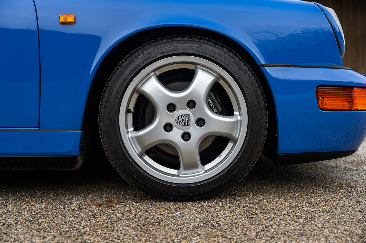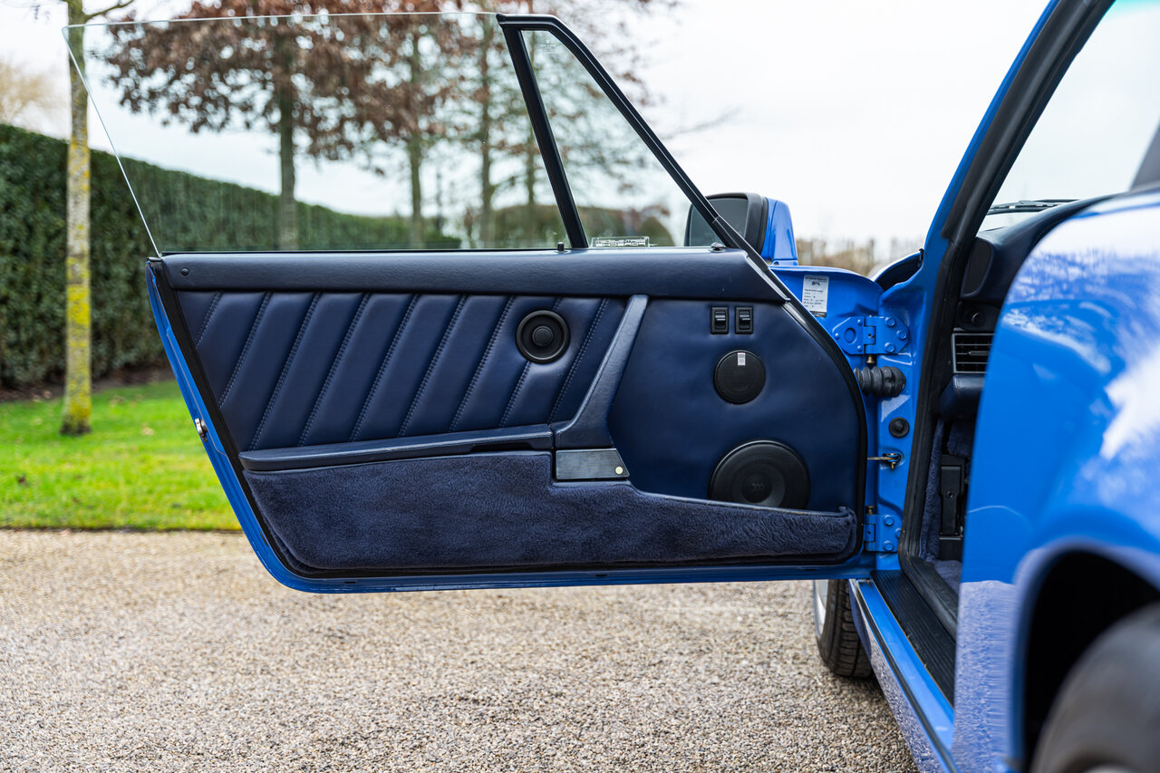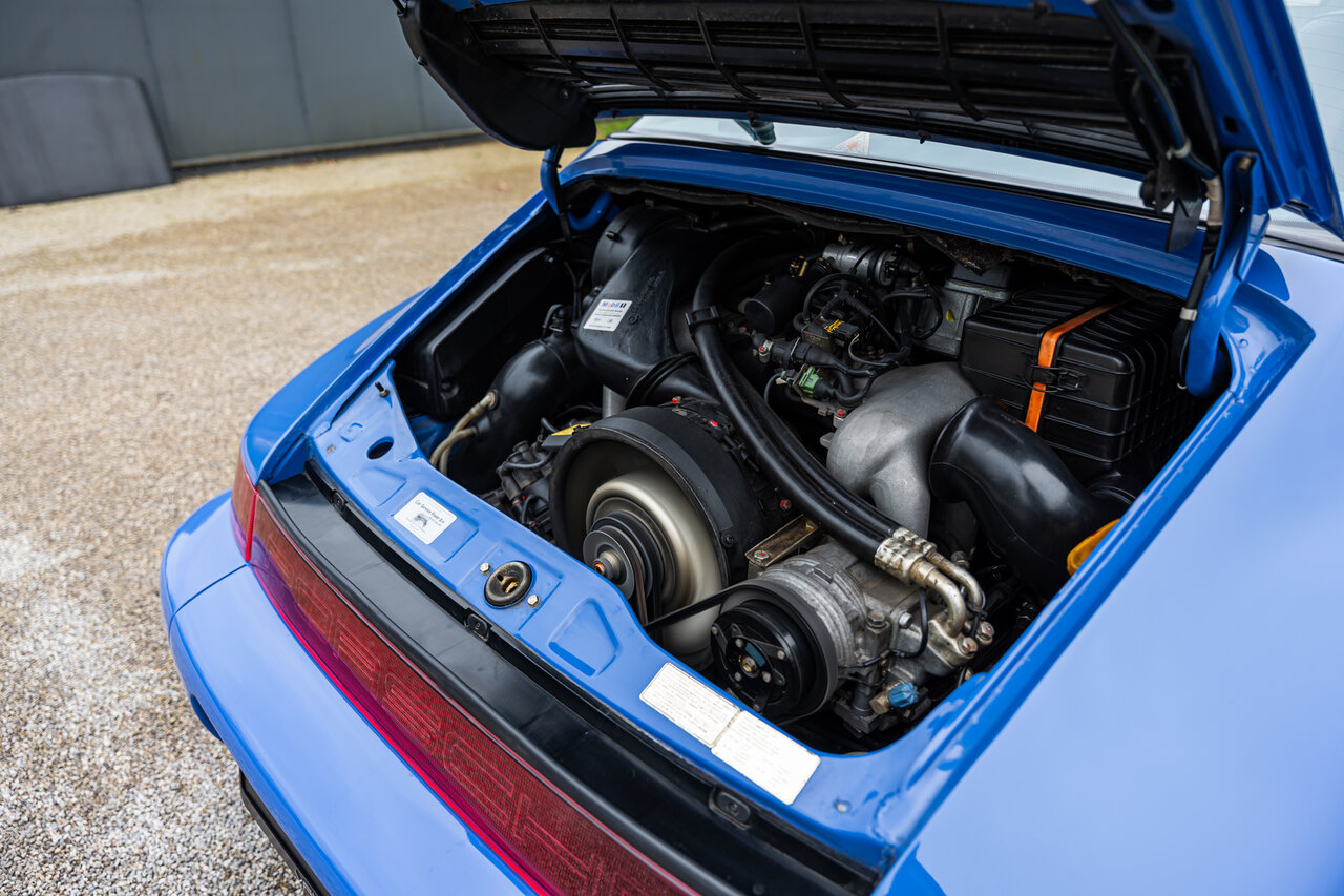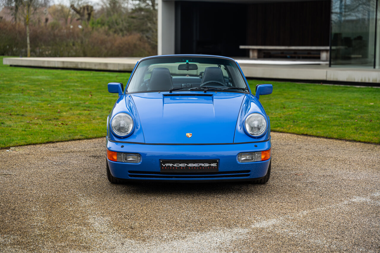 Deze 964 Targa is afgewerkt in het prachtige Maritime Blue (F2V9), een kleur oorspronkelijk ontwikkeld voor de 964 RS-modellen. Omdat deze kleur nooit standaard werd aangeboden op de 964 Targa, zijn er wereldwijd slechts enkele exemplaren in deze configuratie gebouwd. Dit maakt deze Porsche een bijzondere verzamelaarswagen.