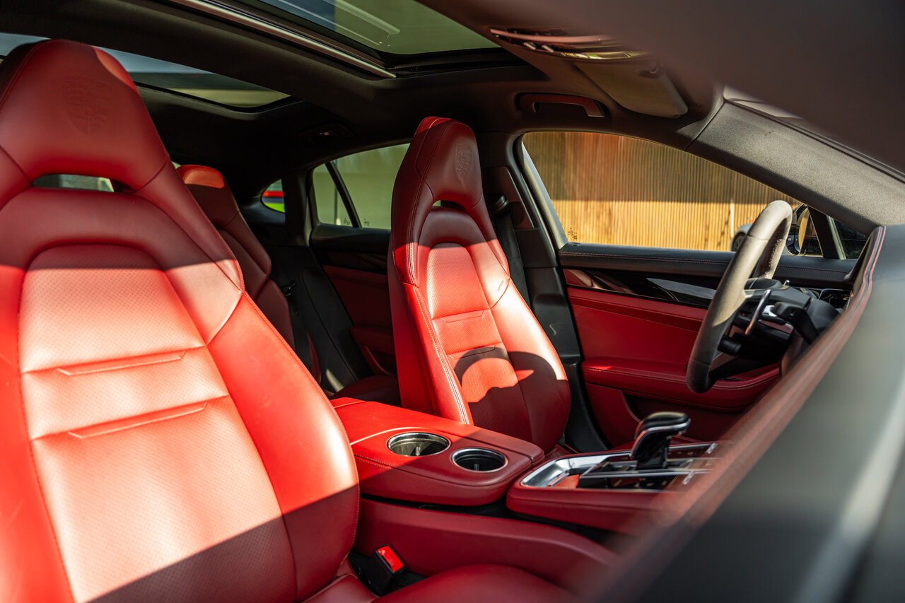 - Porsche embleem op hoofdsteunen